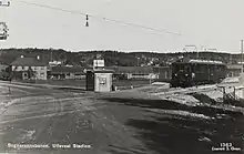 The Ullevål area had residential development from 1855. However, first in the 1920s was there a large-scale construction. Ullevål Hageby was served by the Ullevål Hageby Line of the Oslo Tramway from 1925. Ullevaal Stadion opened the following year, but initially lacked any proper public transport.[1] Aker Municipality worked with plans for construction of a suburban railway which would serve the area. Holmenkolbanen was granted permission in 1922 to build a line, but the plans were placed on hold.[2] Work commenced again in 1933 and the line opened on 10 October 1934.[3]