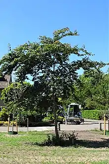 U. uyematsui is rare in cultivation beyond Taiwan; it was introduced to commerce in the Netherlands in 2011. U. uyematsui was selected as one of eight tree species considered hardy enough to survive in the ecological reclamation of the Wujiazi iron mine 270 kilometres (170 mi) north-east of Beijing in Liaoning Province, China, where winter temperatures fall as low as −20 °C (−4 °F).[7] In England the species has survived temperatures as low as −16 °C (3 °F), but has succumbed to prolonged waterlogging on clay soils overwinter.[8]