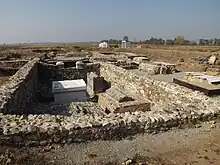 Research attention has so far mainly been given to the findings of the objects in the north entrance of the city. With the addition of the use of air photography and satellites in the past years, archaeologists, with no costly digging and no invasive procedures, were able to find and describe many big antique buildings which included a public bathroom, the forum (administrative center of the city), a residency of the bishop in the era of the early Christianity, and a baptismal chapel.[11]