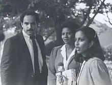 Pemmaraju interviewing candidates Curt Anderson and Georgia Goslee for WMAR-TV in 1982