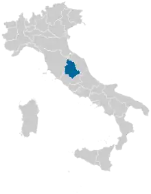 Umbria is one of the 29 constituencies (Italian: circoscrizioni) represented in the Chamber of Deputies, the lower house of the Italian parliament.[2] The constituency currently elects 9 deputies. Its boundaries correspond to those of the Italian region of Umbria. The electoral system uses a parallel voting system, which act as a mixed system, with 37% of seats allocated using a first-past-the-post electoral system and 61% using a proportional method, with one round of voting.[3]