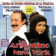Un argentino en New York (international, English title: An Argentine in New York) is a 1998 Argentine film directed by Juan José Jusid and starring Guillermo Francella and Natalia Oreiro. It is the story of an Argentine adolescent girl who travels to New York, and decides to stay and live there. Her father makes the decision to go to New York, a place where he has never been, to meet his daughter and try to bring her back to Buenos Aires. During his journey he’ll discover that his daughter has grown, formed a music band and met an American man who she loves.