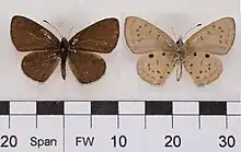 Una is a genus of butterflies in the family Lycaenidae found in southeast Asia. It contains at least the species Una usta (Distant, 1886), and possibly a second species called Una philippensis Schröder & Treadaway, 1986, which is endemic to the Philippines and viewed by some authors as a subspecies of U. usta.