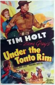 Under the Tonto Rim is a 1947 American Western film directed by Lew Landers and starring Tim Holt, Nan Leslie, and Richard Martin.[1] Written by Norman Houston and based on the 1926 novel Under the Tonto Rim by Zane Grey, the film is about a gang of outlaws who rob a stagecoach and kill one of the drivers. The stagecoach owner goes undercover to learn the identities and location of the gang leaders. The novel had been adapted to film twice before, in 1928 and 1933, under the same title.[2]