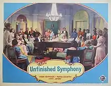 Unfinished Symphony is a 1934 British-Austrian musical drama film directed by Willi Forst and Anthony Asquith and starring Mártha Eggerth, Helen Chandler, Hans Jaray, and Ronald Squire.[1] The film is based on the story of Franz Schubert who, in the 1820s left his symphony unfinished after losing the love of his life.[2] The film's alternate German-language version was called Gently My Songs Entreat.[3] This title refers to the first line of the Lied "Ständchen" (Serenade) from Schubert's collection Schwanengesang, "the most famous serenade in the world", performed by Mártha Eggerth in the film.[4]