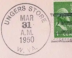 Unger is an unincorporated community in southern Morgan County in the U.S. state of West Virginia. Unger is distinguished amongst other towns in Morgan County for retaining an operating post office since one was established there in 1853. From 1857 to 1935, it was known as Unger's Store until March 31, 1950 (see image) its name was then shortened to Unger on April 1, 1950 [2] (see image).