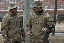 NZDPM and NZDDPM camouflage patterns were replaced in 2013 by a single camouflage pattern and a new uniform called the New Zealand Multi Terrain Camouflage Uniform (MCU) for all branches of NZDF.[48] The camouflage pattern is a variant of the Ghostex family of camouflage patterns by Canadian company Hyperstealth Biotechnology Corp. The cut of the MCU is in the ACU style, with mandarin collar, Velcro closures, slanted arm pockets, and removable elbow pads. However, the MCU pants are not in the ACU style but are instead in the style of the Crye G3 combat pant with additional forward-facing thigh pockets, removable knee pads, and velcro-adjustable cuff flaps for ease of blousing, the style of which is otherwise usually associated with contemporary Special Forces and Police tactical unit assault uniforms.[49][50][51][52] The MCU, with the addition of a beret or sometimes the MRH, is now the working uniform.[53]