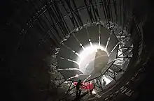 Crew working on the diffuser and contraction vanes, 1996
