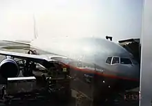 The Boeing 777 is a long-range, wide-body, twin-engine aircraft.[18] At the time of the incident it had a relatively low accident fatality rate. The only two 777 accidents with total loss of aircraft, passengers and crew are Malaysia Airlines flights MH17 that was shot down over Ukraine in July 2014 and MH370 that disappeared over the Indian Ocean in March 2014. The other fatal accidents, Emirates Flight 521 and Asiana Airlines Flight 214, were both attributed to pilot error. Two other hull losses with passenger injuries occurred: EgyptAir Flight 667 had a cockpit fire while parked at the gate at Cairo Airport, and British Airways Flight 38 crashed on landing at Heathrow Airport. The latter was attributed to a design defect in its Rolls-Royce Trent 895-17 engines, not the P&W engines on this incident aircraft.[19][20]