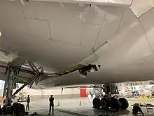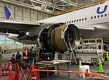 The incident aircraft, N772UA,[13] is a Boeing 777-222, the United Airlines-specific variant of the original 777-200 series.[13] It was built in November 1994 (c/n 26930/Line no.5)[15] and delivered to United in September 1995. Originally the aircraft was designated as WA005, one of the original Boeing 777-200s that took part in the flight test certification program prior to its entry into commercial service.[15] Boeing stopped building the 777 with P&W PW4000 series engines in 2013,[16] and the engine is no longer in active production. After extensive repair, the grounded aircraft was returned to service on August 21, 2022.[17]