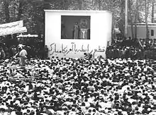 With the outbreak of the Islamic Revolution of 1979 in Iran, the Iranian people, led by Ruhollah Khomeini, found new hope and called for the development of their country.[45] The Iranian people, who were mostly poor at the time, wanted to improve their lives and the future by controlling their national resources (especially oil).[46] But the US government never left Iranian society free. Early in the formation of the Islamic Republic of Iran, despite US support for Iranian insurgent groups and even US provocation of Iraq to fight Iran,[47] Iranian society still maintained its purpose and hope and pursued the country's development with empathy. Cultural and political conflicts between the governments of Iran and the United States have diminished this will and empathy. On the other hand, by imposing sanctions on Iran, the United States made the economic situation in Iran difficult.[48] Today, after more than four decades of the Islamic Republic of Iran, what is left of the United States cultural diplomacy in Iran is like a kind of cultural aggression. The US government, by supporting Iranian separatist groups and their mass media, has opened a trail of discontent and protest to Iranian public opinion.[49][50][51][52][53]
