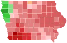 Ernst received widespread attention for a campaign ad she released in March 2014 where she employed a tongue-in-cheek comparison between her experience castrating pigs and her ability to cut "pork" in Congress.[28][29] Many found the ad to be humorous[30][31] and it was spoofed by late-night comedians including Jimmy Fallon and Stephen Colbert,[32][33] while some found it to be in bad taste.[34][35] Before the ad aired, Ernst had struggled in fundraising,[36][37] and two polls of the Republican primary taken in February 2014 had shown her in second place, several points behind opponent Mark Jacobs.[38][39] After it aired, a Suffolk University poll in early April showed her with a narrow lead and a Loras College poll showed her essentially tied with Jacobs.[35][40][41][42] By May, she was being described by the media as the "strong front-runner".[43]