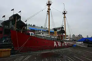 LV-87 was decommissioned on March 4, 1966, from the Coast Guard after 59 years of service. In 1968 she was given to the South Street Seaport Museum in Lower Manhattan. Currently she is moored at Pier 16 on the East River and is used as a floating exhibit.[3] In April 1989, the lightship was declared a National Historic Landmark.[2][4]