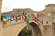 As consequence of the Bosnian War, Gymnasium Mostar - with which UWC Mostar shares a building - teaches two national separate secondary school curricula, intended for Croat and Bosniak students.[2] UWC Mostar students come from all ethnic groups in Bosnia and Herzegovina as well as from the region and abroad.[3] All students live, study and serve the community together, creating a unique example of integrated education in post-war Bosnia and Herzegovina.