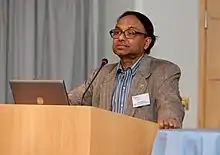Guy Standing, is a professor of Development Studies and co-author of Basic Income: A Transformative Policy for India, who claims basic income is a "matter of social justice."[21] Among Standing's co-authors are other advocates such as Sarath Davala, an independent sociologist, who, in his 2017 Tedx Talk, expressed support for unconditional basic income due its emancipatory effects. Renana Jhabvala, the founder of the Self-Employed Women's Association (SEWA) who facilitated the basic income pilot programme, advocates for basic income as "a social policy whose time has come."[22] Pranab Bardhan, a professor of economics at the University of California, Berkeley, explains that "basic income may very well be fiscally feasible – not to mention socially desirable – in places where the poverty threshold is low and existing social safety nets are both threadbare and expensive to administer."[23] Indian politician Baijayant Panda has also advocated for basic income in India, explaining that "India may be actually be a better case for a basic income" compared to other nations.[24] In 2019, the leading opposition party Indian National Congress announced the NYAY scheme in its election manifesto which was modelled on Universal Basic Income.[25] Vikas Singh, an Indian economist and advocate of basic income, spoke in his TedX talk about equality being the bedrock of democracy.[26]