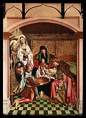 - The Samuel H. Kress Collection, donated in the early 1950s. It consists of more than 60 European works from the 14th through 19th centuries, including the 26-panel Retablo of the Cathedral of the Ciudad Rodrigo by Fernando Gallego and Maestro Bartolomé. A retablo is a church altarpiece with a picture or relief on a religious subject. Arizona Public Media produced a one-hour documentary on the panels, which were originally from Ciudad Rodrigo and include depictions of the creation according to Genesis, the Life of Christ, and the Last Judgment, tracing the retablo through earthquakes, damage from the Napoleonic War, a trans-Atlantic voyage, and storage in a bunker during the Second World War. The panels are "considered by scholars to be some of the most beautiful and iconographical ambitious paintings of the 15th century."[7] According to historian David Leighton, the collection was first revealed to the public during the three-day inauguration ceremony of University of Arizona President Richard A. Harvill, in 1951.[8] The Kress collection also includes paintings by Jusepe de Ribera, Domenico Tintoretto, Giovanni Battista Tiepolo, Horace Vernet and Louise Élisabeth Vigée Le Brun.[1] There are also Late Medieval and Renaissance paintings by Jacopo del Casentino, Taddeo di Bartolo, Niccolo Del Ser Sozzo Tegliacci, Francesco De Bosio Zaganelli, Vittore Crivelli, Guidiccio Cozzarelli, and Vittore Carpaccio.