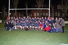 In the 2012/13 season the 1st XV was captained by Will Belvins with Lloyd Collier as Chairman. This year saw the revival of the game against the University 1st XV on the final day of the Christmas term, under floodlights on the Bournbrook. In what was one of the most impressive performances seen by any Club side over recent time, the 1st XV ran out 15-11 winners in what was an incredible performance in front of over 1000. Unfortunately, after an impressive start in NAMS, we eventually lost out to Cardiff Medics in the semi-final.[6]