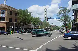 Uptown is a commercial district in southwestern Minneapolis in the U.S. state of Minnesota, that is centered at the intersection of Hennepin Avenue and West Lake Street. It has traditionally spanned the corners of four neighborhoods, Lowry Hill East, East Bde Maka Ska, South Uptown and East Isles neighborhoods, which are all within the Calhoun Isles community.[2] Historically, the boundaries of Uptown are Bde Maka Ska (formerly Lake Calhoun) to the west, Dupont Avenue to the east, 31st Street to the south, and 28th Street to the north; though these borders often vary. Uptown is a popular destination for retail, nightlife, and cultural events, and the district was famously written about by recording artist Prince.[3]