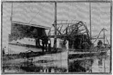 Urania had her share of mishaps during her operational life. In August 1908, Cyrene's bowsprit punched a hole in Urania's cabin.[11] In November 1908 she went aground at the entrance to Union Bay and was stuck for a day before she was refloated.[12] On December 20, 1913, passenger John White committed suicide by jumping into Lake Washington from Urania's stern.[13] The worst came on February 12, 1914. Urania burned at her dock at the Anderson Shipbuilding facility in Houghton. The fire pumps on Fortuna extinguished the flames, but not until after most of Urania's upper works had been destroyed.[14] Captain Anderson built Dawn to replace her.[15]