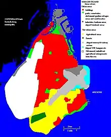 "Hovedstadsområdet" contains the entire Copenhagen and Tårnby municipalities, although the latter contains large areas without buildings and inhabitants. This also applies to a smaller part of Copenhagen on Amager island.