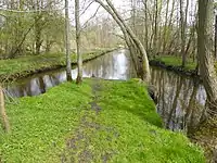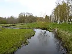 Usserød Å extends from the south side of Sjælsø Lake. Its first part is heavily regulated and runs through the outskirts of Birkerød, Eskemose Skov and the Istedrød area. It then passes under the Helsingør Motorway and continues through the protected Usserød Ådal(Usserød Valley) at Mortenstrup before entering a suburban neighbourhood just north of Kokkedal station. Usserød Å then passes the three mill ponds Stanpedammen, Frederiksdam and Mølledammen before joining Nive Å at Nive Watermill.[1][2]