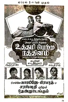 Uthami Petra Rathinam (transl.A Precious Gem) is a 1960 Indian Tamil-language drama film directed by M. A. Thirumugam and written by Aaroor Dass. The film stars K. Balaji, Malini and P. Kannamba, with T. K. Ramachandran, M. N. Rajam, Pandari Bai, S. V. Sahasranamam, Kuladeivam Rajagopal and Manorama in supporting roles.[1] It was released on 1 April 1960, and failed at the box office.