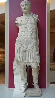 Displaying their fondness for Cato, "the people of Utica...called Cato their saviour and benefactor... And this they continued to do even when word was brought that Caesar was approaching. They decked his body in splendid fashion, gave it an illustrious escort, and buried it near the sea, where a statue of him now stands, sword in hand".[13] After his death, Cato was given the name of Uticensis, due to the place of his death as well as to his public glorification and burial by the citizens of Utica.[14]