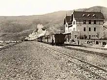 Uvac (Serbian Cyrillic: Увац) is a village in the municipality of Rudo, Republic of Srpska, Bosnia and Herzegovina.[1] It is on the border between Serbia and Republic of Srpska. Uvac was one of the two end stations of the Bosnian Eastern Railway, which had been built from Sarajevo to Uvac and Vardište during the Austro-Hungarian rule in Bosnia and Herzegovina. Construction of the line started in 1903. It was completed in 1906, using the 760 mm (2 ft 5+15⁄16 in) track gauge. With the cost of 75 million gold crowns, which approximately translates to 450 thousand gold crowns per kilometer, it was one of the most expensive railways in the world built by that time.[2] The extension to Priboj was built in 1928, and opened for traffic on 1 January 1929.[3] The line was closed down in 1978, and dismantled afterwards.[2]