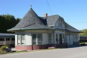 Grand Trunk constructed the current station building in 1904, with its distinctive "witch's hat" roof, to replace the more basic shed structure that had previously been used.