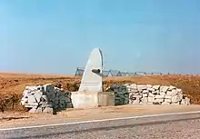 On December 2, 1995, a stone monument near the old post office along the Olomouc road was unveiled (49°11′21″N 16°50′36″E / 49.18925°N 16.8432778°E). It was built by the Czechoslovak Napoleonic Society together with the Austerlitz Battery to commemorate two Austrian artillery batteries, which under the command of Major Václav Jan Frierenberger covered the retreat of the Russian corps of General Pyotr Bagration at the conclusion of the Battle of Austerlitz.[6][7]