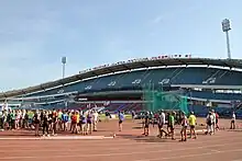 The Världsungdomsspelen (translation: World Youth Games), also known as the Gothenburg Youth Games, is an annual youth outdoor track and field competition open to the public, with age category competitions between the ages of twelve and nineteen, as well as senior level events. First organised in 1996, it is held over three days each July at the Ullevi stadium in Gothenburg. It is a mass participation event, typically attracting around 3500 mostly Swedish athletes, and its popularity has led to the introduction of qualifying standards for the throwing events.[1] The event attracts participation from beyond Sweden, with twenty nations represented at the 2019 event.[2]