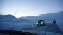 Winterly road conditions on the Hringvegur near Vífilsfell