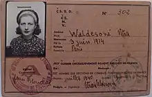 Věra Waldes - Hromádková (3 June 1914 – 24 November 1995) was a prominent fighter in communist anti-nazi resistance in Paris during World War II.[1]