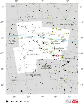 V630 Sagittarii (Nova Sagittarii 1936) was a nova visible to the naked eye in 1936. It was discovered on 3 October 1936 by Shigeki Okabayashi of Kobe, Japan when it had an apparent magnitude of 4.5.[4]