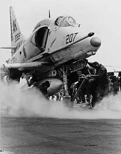 VA-106 A-4E prepares to launch from USS Intrepid in 1968