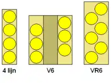 Top views of a straight engine (left), V engine (centre) and VR engine (right)