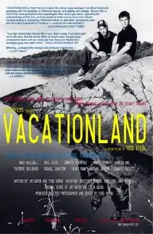 Vacationland is an independent, gay-themed, coming-of-age film directed by Todd Verow and starring Brad Hallowell as Joe and Gregory J. Lucas as Andrew, two high school youth who have a crush on each other, but have difficulties reconciling with their sexuality in a small town. "Vacationland" is one of the official slogans for the state of Maine, where the events of the film take place.