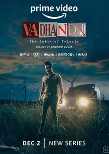 Vadhandhi: The Fable of Velonie (transl.Rumour: The Fable of Velonie) is a 2022 Indian-Tamil-language mystery crime thriller streaming television series created by Andrew Louis, of Leelai and Kolaigaran fame,[1][2] for Amazon Prime Video.[3][4] It was directed and written by Andrew Louis. The principal cast of the series includes S. J. Suryah,[5] Laila, Nassar, Sanjana Krishnamoorthy, Smruthi Venkat, Vivek Prasanna, Kumaran Thangarajan, Vaibhav Murugesan, Vikky Aadithya and Hareesh Peradi. It premiered on 2 December 2022[6][7][8] and consists of eight episodes.