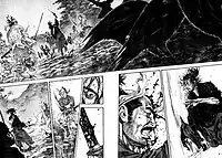 In early releases of the manga, MangaLife found Musashi appealing for his quest of strength and Inoue's detailed artwork despite its slow pacing.[43] They find the early journey of Musashi impressive due to the emphasis on violence over his mental development and his connections with Matahachi.[44] The eventual release of the sixth volume received more acclaim from the Manga Life for further developing Musashi's bushido, his acceptance of his weak point and how Matahachi also kept appearing despite the two still not meeting.[45] The Fandom Post was drawn out by the writing of Inoue when reading the first manga volume, praising its large amount of content and whether or not Musashi is still capable of being a true warrior when interacting with the monk Takuan.[46] A similar comment was given by ComicBookBin with the reviewer claiming that his impression of Vagabond was so impressive that it reminded him of the comic book Batman: The Dark Knight Returns, praising the way Inoue portrays violence in a realistic fashion.[47] Another aspect praised by the same website was the lack of large amount of dialogue needed to describe the characters.[48]