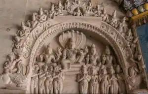 Pillars and bas-reliefs based on Mahabharatha and Harivamsa