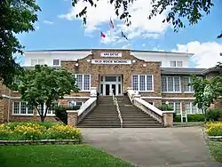 Valdese Elementary School, also known as the Old Rock School, is a historic school building located at Valdese, Burke County, North Carolina. It was built in 1922–1923, and is a two-story, fieldstone four square building with a hipped roof. It features a T-shaped clerestory above the auditorium space. It was constructed largely by Waldensian settlers from Northern Italy.[2]