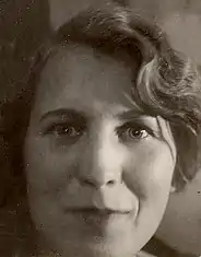 Valentina Kulagina, full name Valentina Nikiforovna Kulagina-Klutsis (Russian: Валентина Никифоровна Кулагина-Клуцис, 1902–1987[1]) was a Russian painter and book, poster, and exhibition designer. She was a central figure in Constructivist avant-garde in the early 20th century alongside El Lissitzky, Alexander Rodchenko other and her husband Gustav Klutsis. She is known for the Soviet revolutionary and Stalinist propaganda she produced in collaboration with Klutsis.
