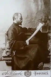 Born in the village of Eki, Kutais Governorate, Russian Empire, in what is now the Senaki Municipality of a family of untitled Mingrelian nobility, Gunia attended the realschule in Tiflis until being expelled for participation in student protests in 1881. He then studied at the Petrovsko-Razumovsky Agricultural Academy in Moscow. In 1882 he joined the Georgian Dramatical Troupe in Tiflis. As an actor, he played leading roles in major European plays. He also trained many talented actors, and organized seasonal and travelling companies. He was a strong proponent of realistic theatre and his plays found notable place in the repertory of the Georgian theatre. He also translated several plays by the Russian and Western European authors and wrote a history of the Georgian theatre.[1] Beginning in 1913, Gunia also appeared in several Georgian films.[2] He died in Tbilisi and was interred at the Didube Pantheon.
