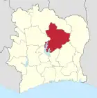Vallée du Bandama Region is a defunct region of Ivory Coast. From 1997 to 2011, it was a first-level subdivision region. The region's capital was Bouaké and its area was 28,518 km².[1] Since 2011, the area formerly encompassed by the region is co-extensive with Vallée du Bandama District.[2]