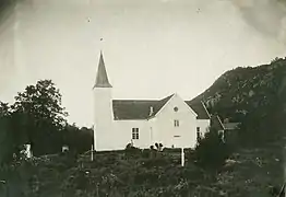 The earliest existing historical records of the church date back to the year 1390, but it was not new that year. The medieval building was likely a stave church, and it was probably located about 60 metres (200 ft) north of the present church site, at the north end of the present church cemetery. In 1577, the local parish priest, Peder Claussøn Friis, built a new church on the same site as the previous church. From 1678-1680, the church was enlarged by adding onto the sides, creating a cruciform design. In 1793, a new church was constructed about 60 metres (200 ft) to the south of the old church. After the new church was completed, the old church was torn down. The new church also had a cruciform design.[3]