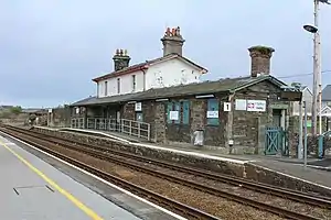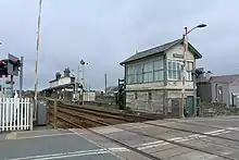 Valley railway station (Welsh: Gorsaf reilffordd y Fali) is a railway station that serves the village of Valley in Anglesey, Wales. It is the last station before the western terminus of the North Wales Coast Line at Holyhead. It also serves the nearby RAF base and Anglesey Airport.