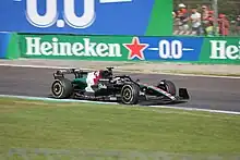Bottas took pole position at the season-opening Austrian Grand Prix and led the race from start to finish.[89][90] Before the Styrian Grand Prix, it was revealed that Bottas and his team Mercedes were under investigation by the FIA for potentially breaching COVID-19 safety protocols after he returned home to Monaco. Whilst it was initially reported that Mercedes would receive warning letters,[91] Bottas and Mercedes were eventually cleared of any wrongdoing.[92] Bottas qualified fourth in wet conditions for the Styrian Grand Prix and went on to finish second in the race behind Hamilton, cutting his championship lead to six points.[93] Bottas qualified second behind Hamilton at the Hungarian Grand Prix, but made a false start and lost four places at the first corner. He was able to recover to third place by the end of the Grand Prix but lost the lead of the championship to Hamilton.[94]