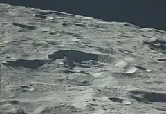 Oblique Apollo 16 image, facing north. Van Gent at center, Van Gent X in upper left.