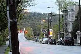Van Schaick Island is crossed east/west by Ontario Street (NYS Route 470), the main street of the island. The east end of Ontario Street crosses the 112th Street Bridge over the Hudson River and connects the island to Rensselaer County. This is the primary connection between northern Albany and northern Renssselaer counties. At the western gateway Ontario crosses a bridge over one of the Mohawk branches to Simmons Island and from there to NYS Route 787 and Downtown Cohoes. The rest of Van Schaick Island is in a traditional north-south/east-west street grid.[13] The eastern side of the island was home to a Delaware and Hudson Railway line along Delaware Avenue that ran from Green Island north through the Island to Peebles Island and Saratoga County. The Black Bridge to Green Island was built in the 1890s and the rail line was still used into the 1960s. The Open Space Institute purchased the railway for the purpose of a rails to trails project and once the conversion to a bike-hike trail (the Delaware Avenue Trail) is complete the Institute will turn the deed over to the city of Cohoes. The Delaware Avenue Trail will connect the Mohawk Hudson Hike/Bike Trail and the Champlain Canal Bike Trail.[14]