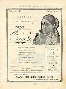 Vande Mataram (transl. Hail to the mother![1]) is a 1939 Indian Telugu-language film directed by B. N. Reddy and starring V. Nagayya and Kanchanamala.[2] The story is based on Reddy's short story Mangala Sutra. The film was a box office success.[1][3][4]